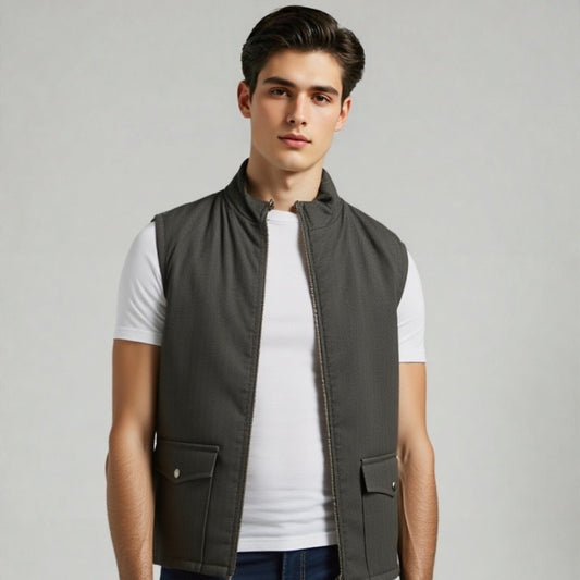 GRAY & BLACK SLEEVELESS PUFFER JACKET